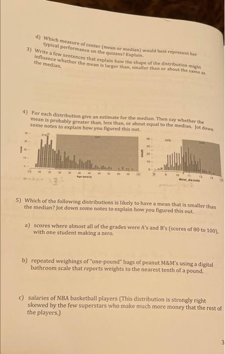 Solved D Which Measure Of Center Mean Or Median Would Chegg Com